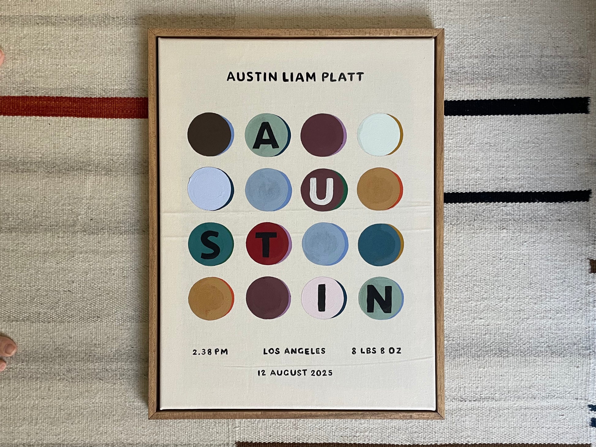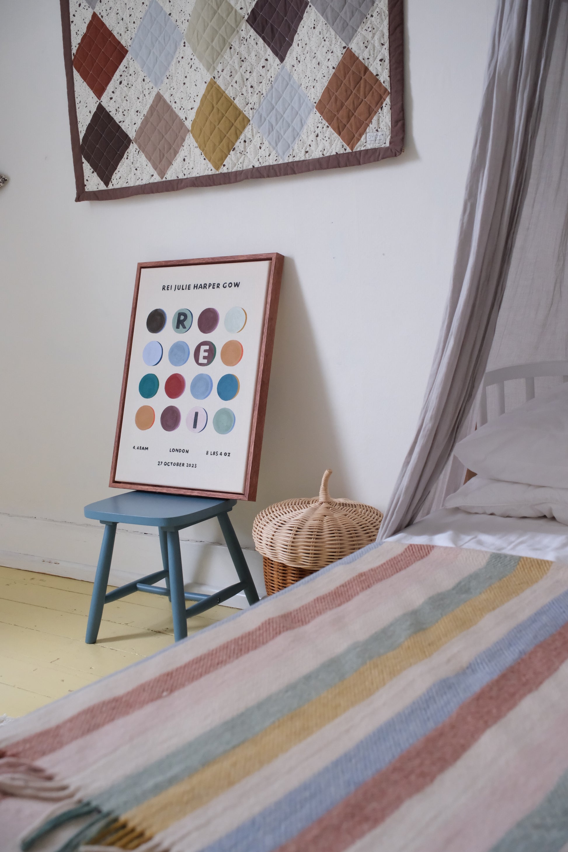 Designed as a modern keepsake, this piece is made to live beyond the nursery — a quiet, considered artwork that grows with your child.